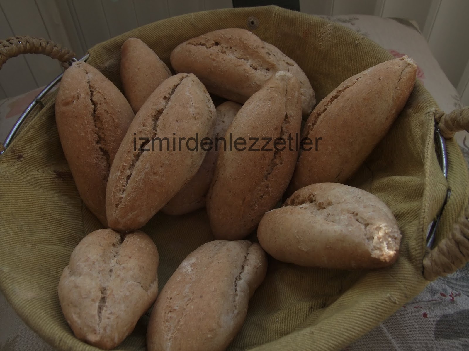 döküp iyice 10-15 dak. yoğurun.Hamurun kıvamı ele az yapışır yumuşaklıkta olmalıdır. Unlanmış fırın tepsisine küçük ekmek şeklini vererek aralıklı sıralayın.Ön mayalanma için fırını 50 dereceye getirip tepsiyi fırında 30 dak. mayalanmaya bırakın.Fırının ısısını 180 – 200 dereceye çevirip ekmekçiklerin üzerine su serpip , keskin bir bıçak yardımıyla çizgi atın. Fırına ısıya dayanıklı bir kap içerisinde su bırakıp buhar yapmasını sağlayın.Ekmeklerin üzeri kızarana kadar yaklaşık 30-40 dak. pişirin.Ilık servis yapın.(13 adet ekmekçik çıkıyor)